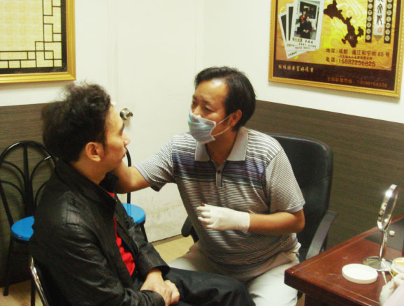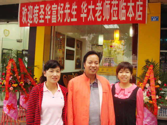 左起华太老师、痣圣华富好先生、痣缘宫成都店店长华媛媛