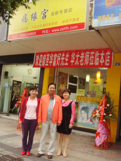 左起华太老师、痣圣华富好先生、痣缘宫成都店店长华媛媛